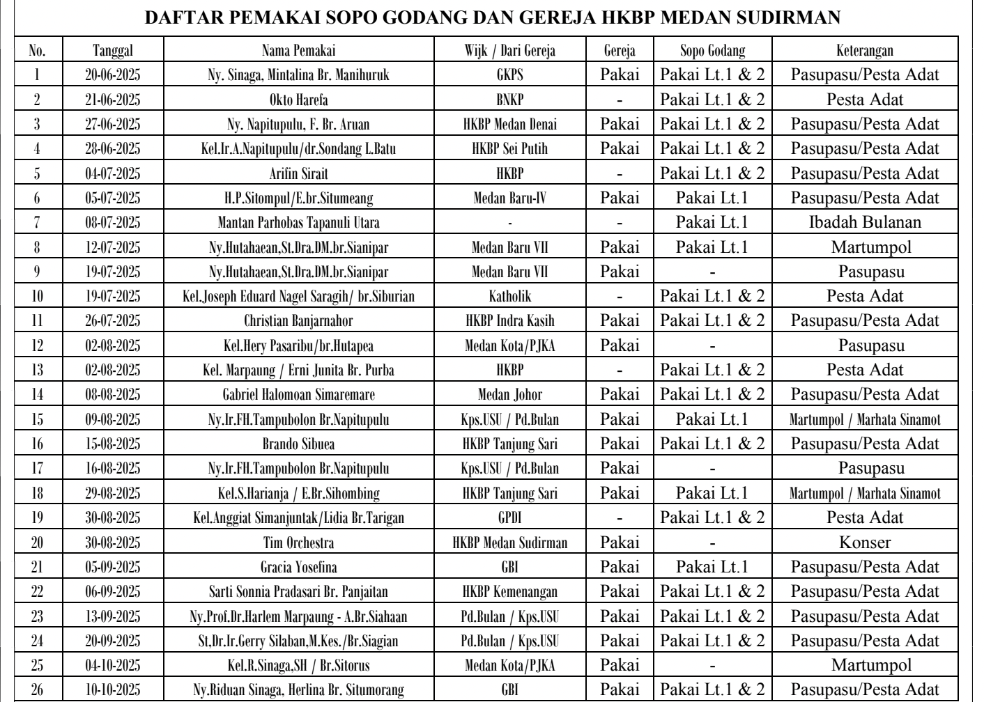 Daftar Penyewaan Sopo Godang