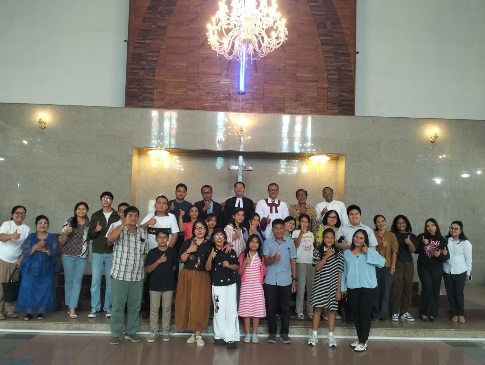 Ibadah Pemberangkatan Ujian Akhir bagi anak-anak jemaat dihadiri anak-anak SD,SMP, SMA/SMK bersama orang tua mereka, dihadiri sejumlah pengurus Seksi Pendidikan. Liturgist oleh St.Urbanus Sitorus,SE, doa syafaat disampaikan St.Ir.Wilson Pardede, kolektan oleh St.A.Siringoringo,SE, didukung tim song leader dan pemusik.Acara ditutup dengan foto bersama.(RED/MBB)